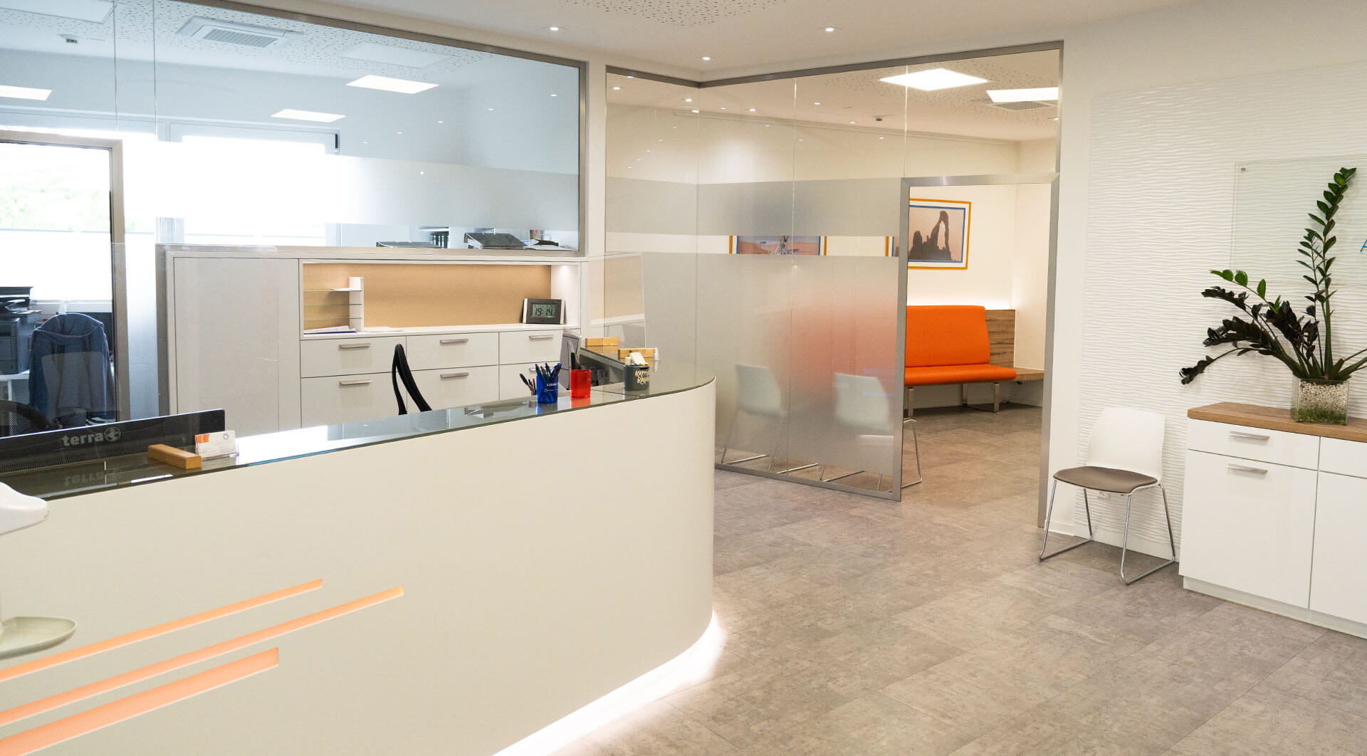 Patient*innen, die bereits einen Termin haben und nach dem 1.6.2025 bei uns waren, können sich ganz entspannt selbst anmelden und dann Platz nehmen. Das Terminal befindet sich links vor der Anmeldung.