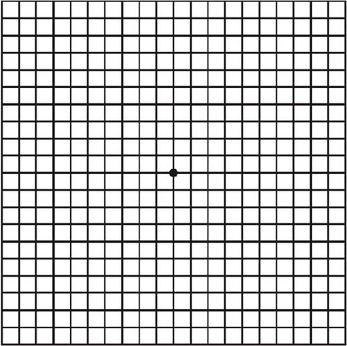 - Falls Sie verschwommene Stellen, verzerrte Linien oder dunkle Flecken wahrnehmen, könnte dies auf eine Netzhauterkrankung hinweisen.