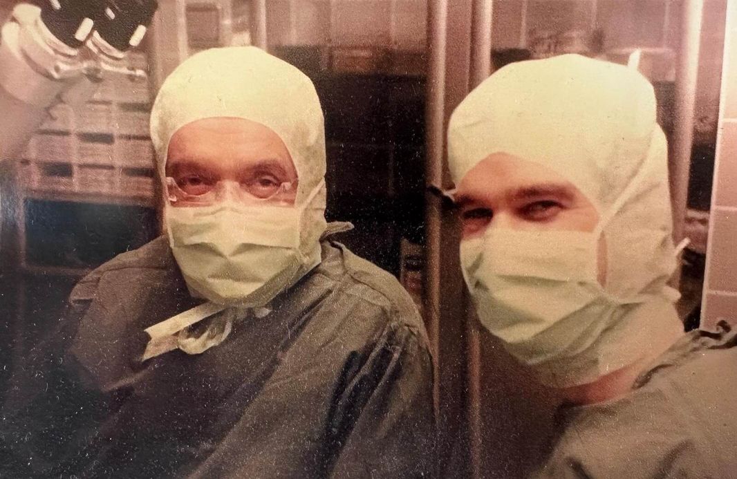 1992: Prof. Lund und Dr. Patrick Vivell im Augen OP der Augenklinik der LMU, München